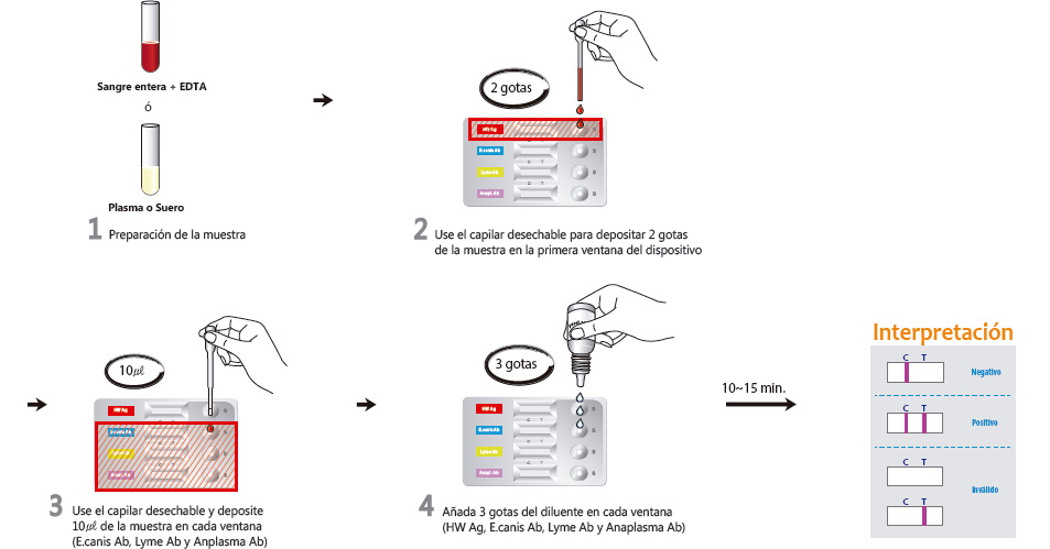 • Detección simultánea del Antígeno y Anticuerpos del Gusano del corazón con una sola muestra