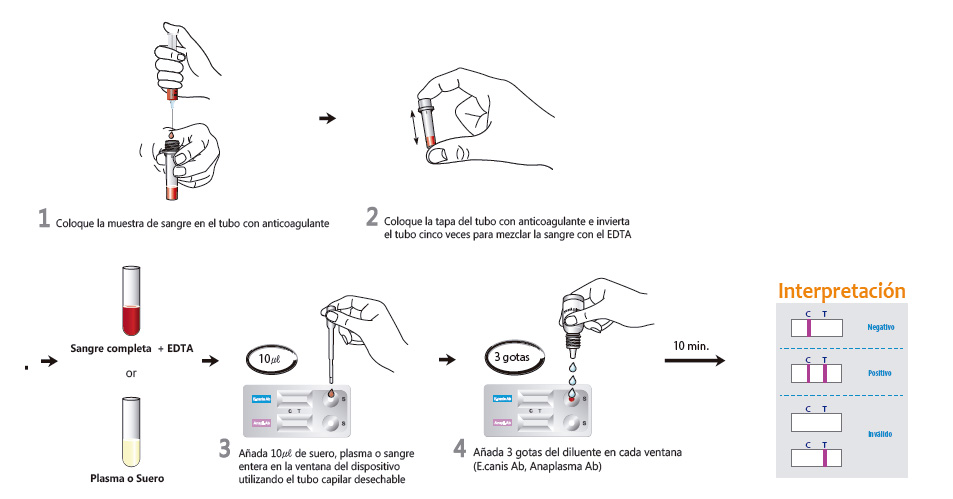 • Detección simultánea del Antígeno y Anticuerpos del Gusano del corazón con una sola muestra