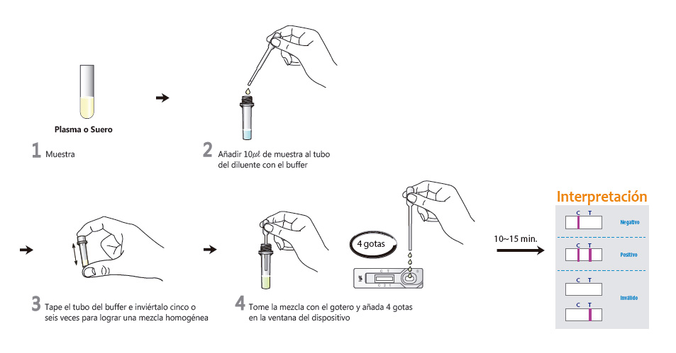 Materiales . Dispositivos para prueba rápida . Tubos con diluente para muestras . Goteros desechables
